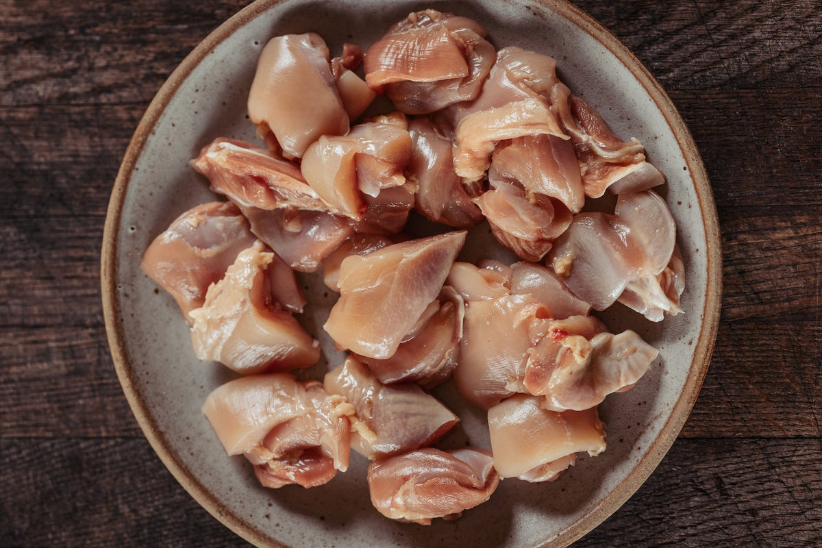 Our Slowly Grown, Properly Free Range Diced Chicken is a real kitchen staple. Hand-cut by our skilled butchers, each piece is the ideal size for quick braising or gentle slow cooking.